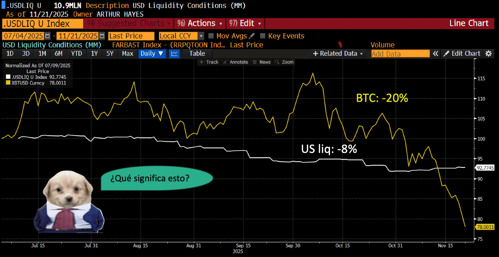 la liquidez subió un poco esta semana y btc cayó como gorda en tobogán.