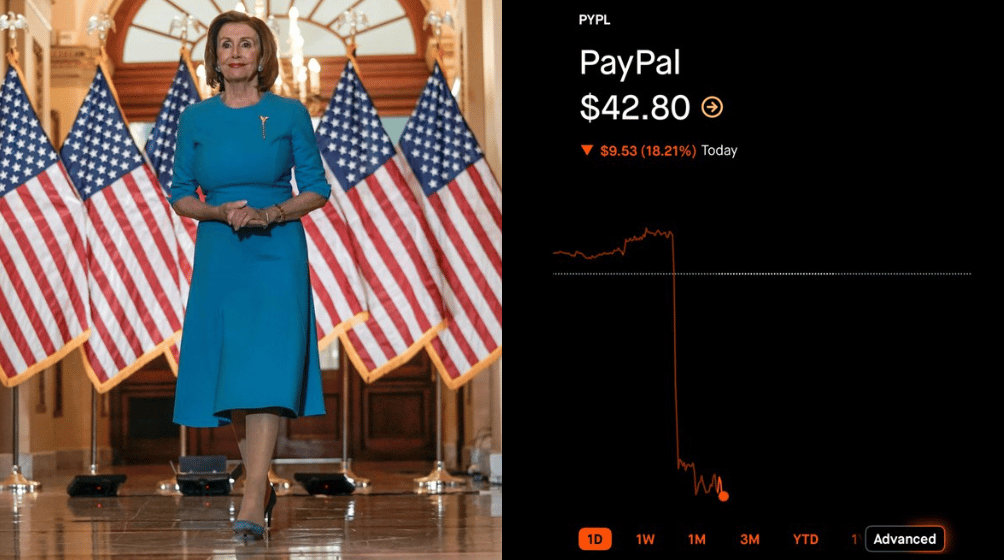 El lunes pasado de anunció que Nanacy Pelosi vendió sus acciones de Paypal, y al siguiente día cayeron 18%