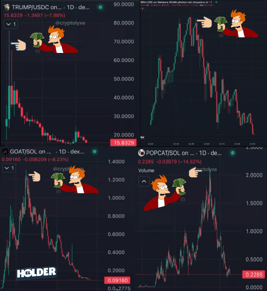 En ese momento los youtubers y tiktokers empezaron a publicar videos sobre como hacer 100x en memecoins,