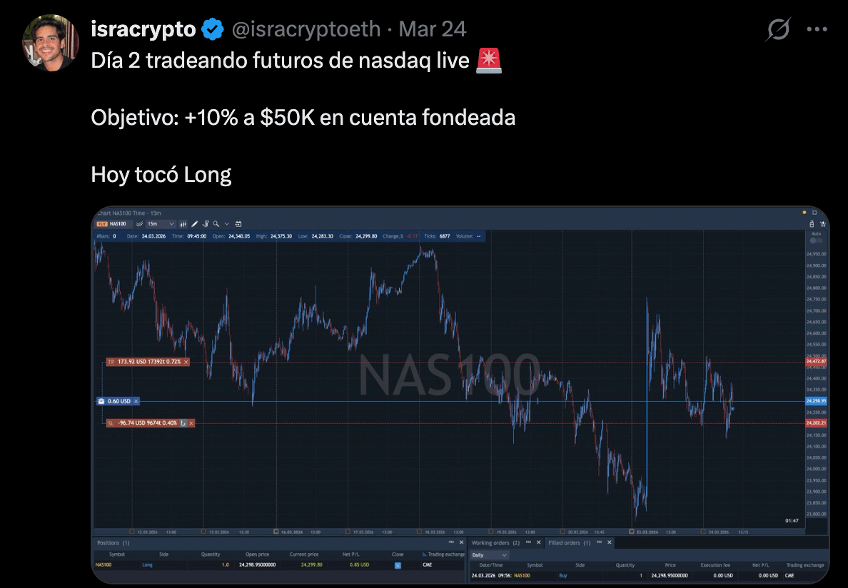 Si me sigues en X sabes que estoy tradeando una cuenta de $50k live.